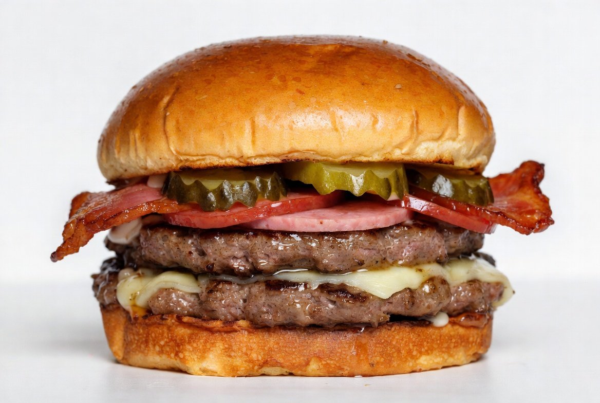 The Meaty Mighty Beef Burger is made for those who crave a bold, hearty, and indulgent burger experience. At its center is a premium beef patty, generously seasoned and grilled to perfection, delivering a juicy, tender bite with a savory seared exterior.