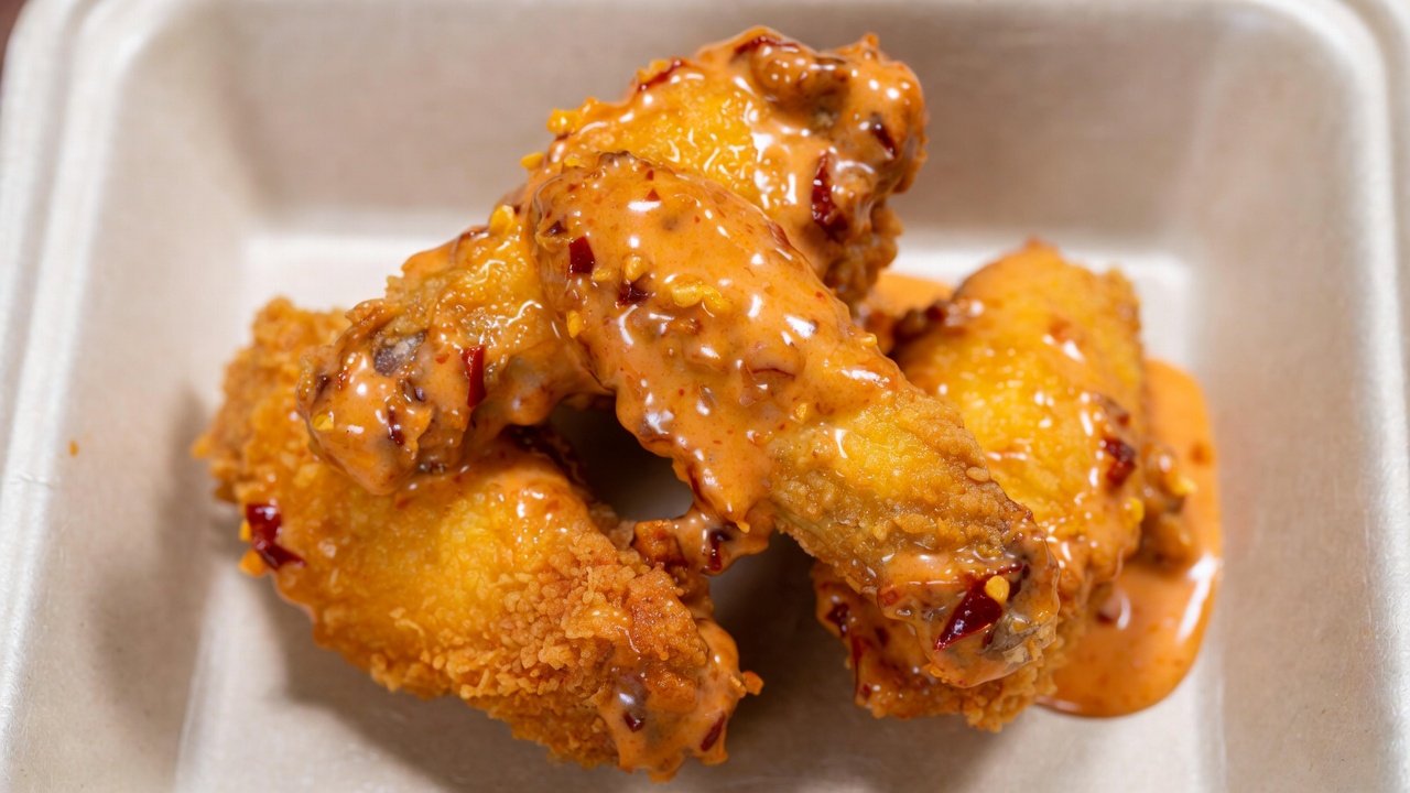 Melta Naga Cream Buffalo Wings are an intense and flavorful experience for heat lovers. Juicy and crispy chicken wings are perfectly cooked and coated in a rich, creamy naga chili sauce. The fiery naga spice delivers a bold, slow-building heat that lingers on the palate. Creamy texture balances the intense spice, creating a smooth yet fiery flavor profile. Each wing is fully coated, crispy on the outside, and tender inside. The sauce infuses every bite with smoky, spicy, and savory notes. Perfectly balanced heat and creaminess make it a unique twist on classic buffalo wings. Ideal as a snack or full meal, these wings excite every taste bud. The aroma alone instantly awakens the appetite. Party platters or casual dinners, these wings are always a crowd favorite. Heat and flavor remain intense until the last bite. Easy-to-eat boneless options are available for convenience. Perfect for spice enthusiasts and adventurous eaters. A true must-try for those who love fiery, creamy wings. Each bite delivers a thrilling combination of cream, spice, and bold buffalo flavor