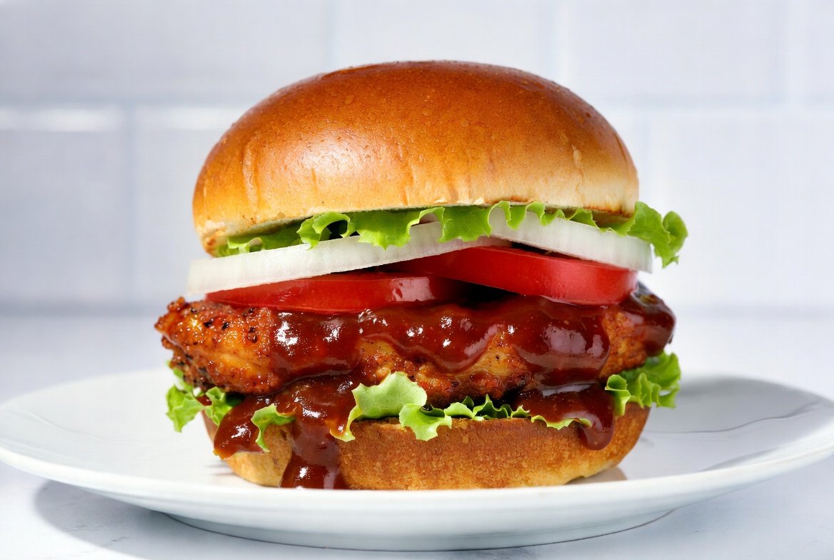 The Smoky BBQ Chicken Burger is a perfect choice for those who love rich, bold flavors with a smooth smoky finish. It features a crispy, golden chicken patty, seasoned and cooked to maintain juiciness while delivering a satisfying crunch in every bite.