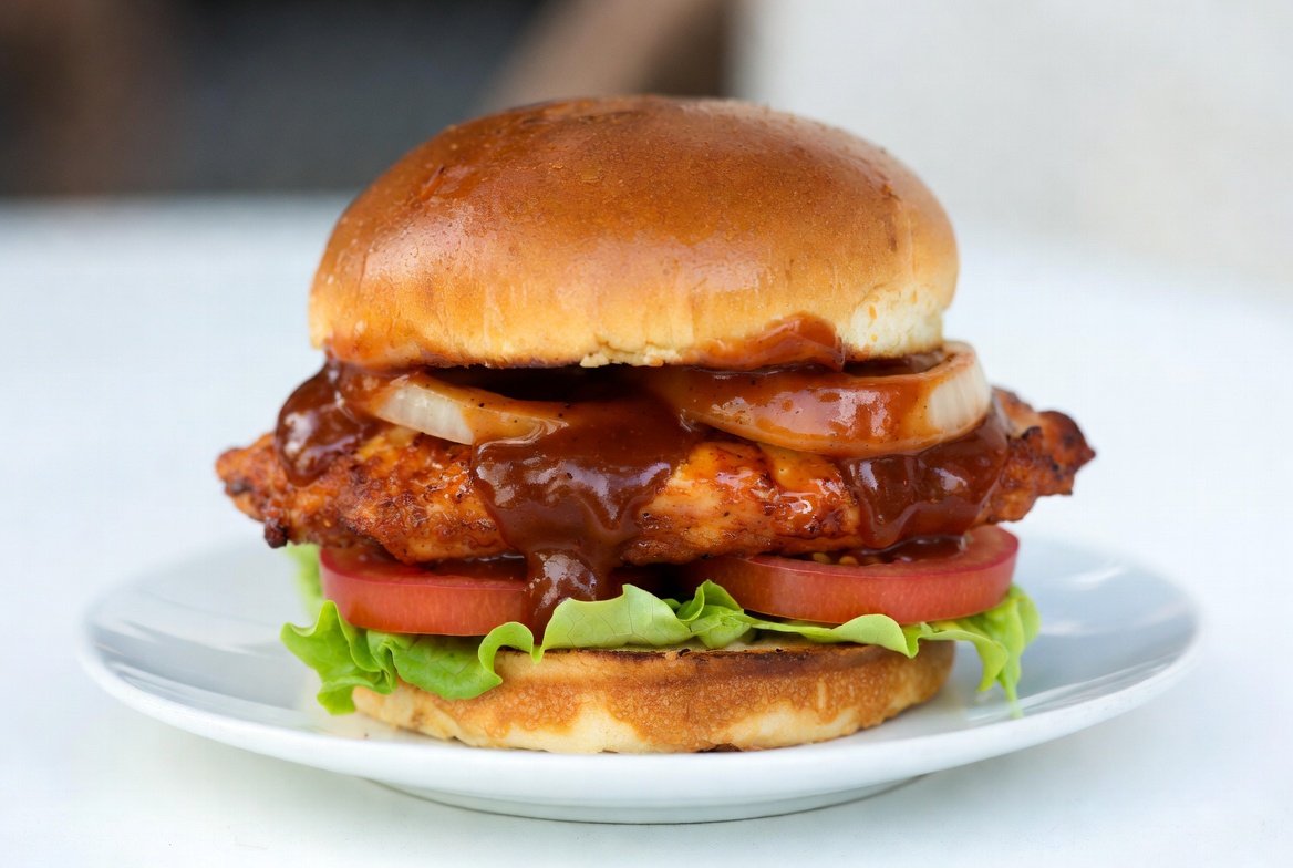 Fresh lettuce adds a light, crisp texture that balances the richness of the flavors. The highlight of this burger is our signature smoky BBQ sauce, infused with deep barbecue notes that bring a slightly sweet, smoky richness to the chicken without overpowering it. This sauce creates a comforting and indulgent flavor profile that BBQ lovers will appreciate.